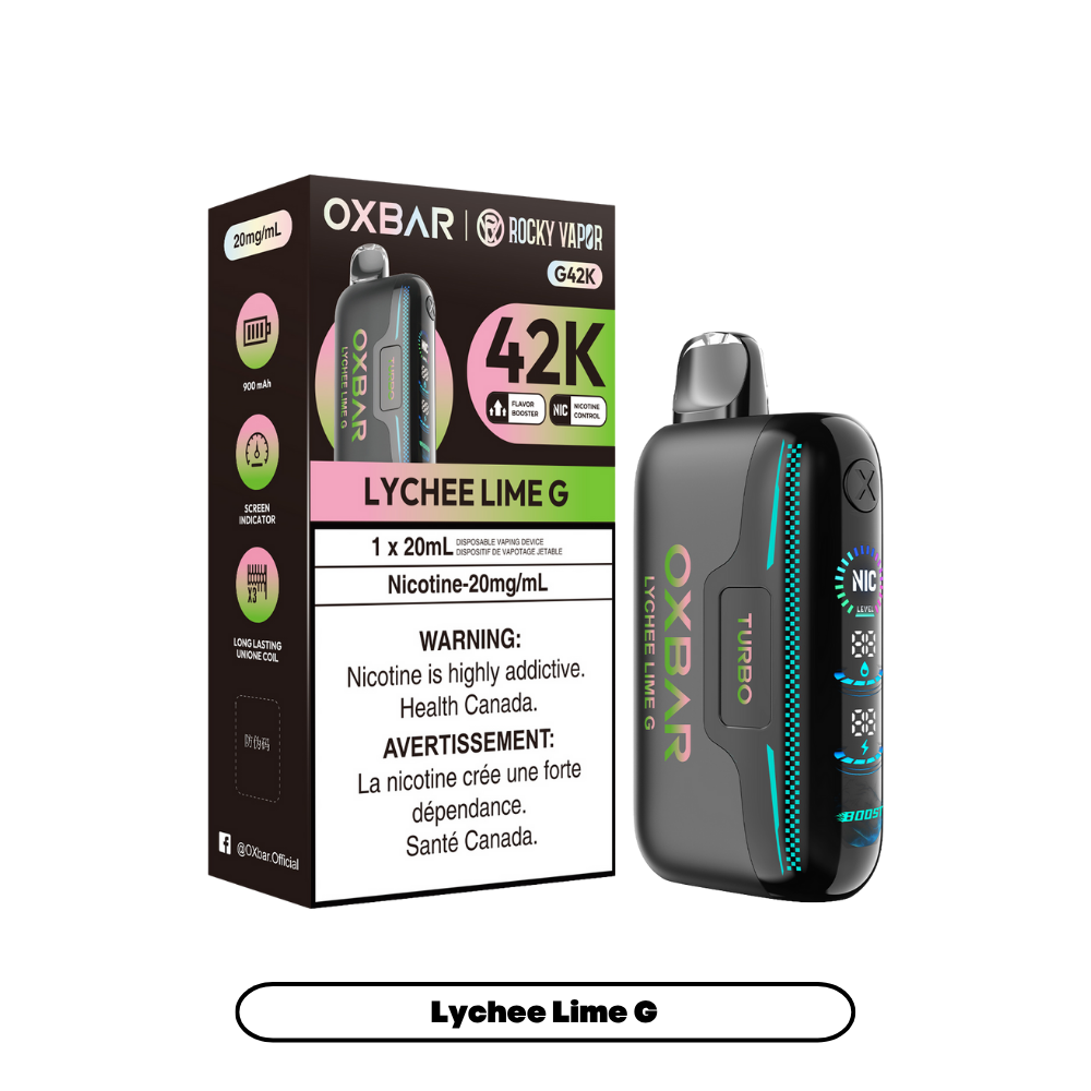 Oxbar Rocky Vapor G42k Lychee Lime G 42K Puffs Adjustable Nicotine Rechargeable Disposable Vape 20Mg