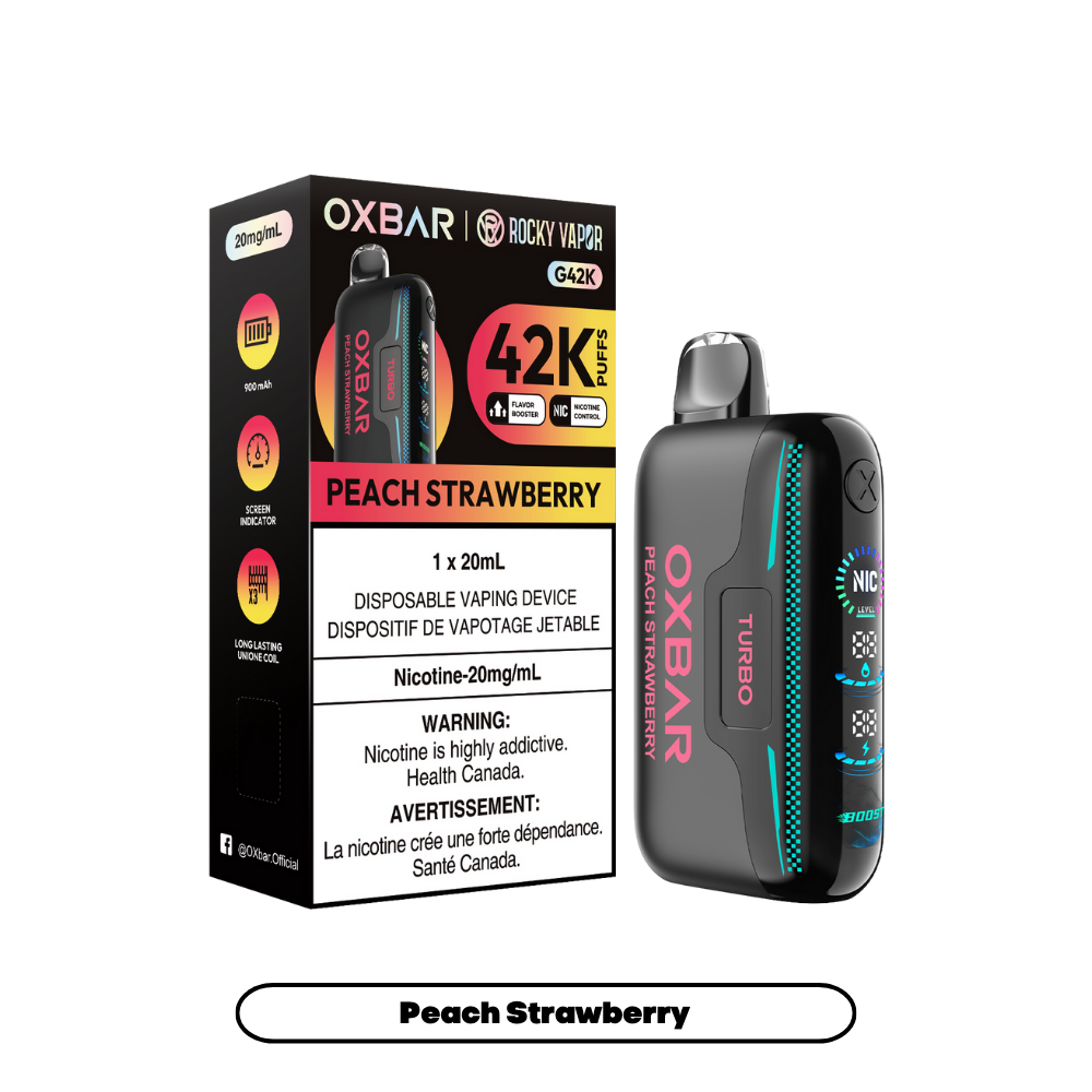 Oxbar Rocky Vapor G42k Peach Strawberry 42K Puffs Adjustable Nicotine Rechargeable Disposable Vape 20Mg