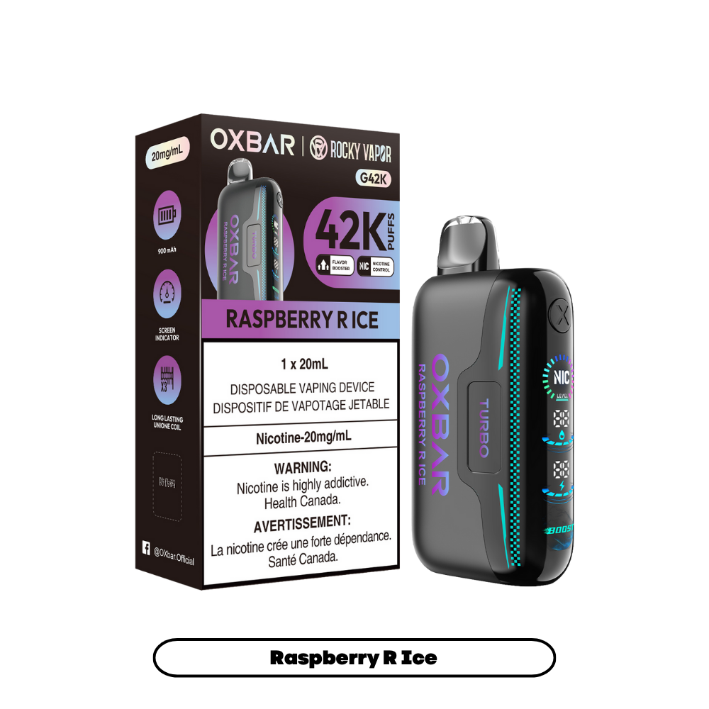 Oxbar Rocky Vapor G42k Raspberry R Ice 42K Puffs Adjustable Nicotine Rechargeable Disposable Vape 20Mg