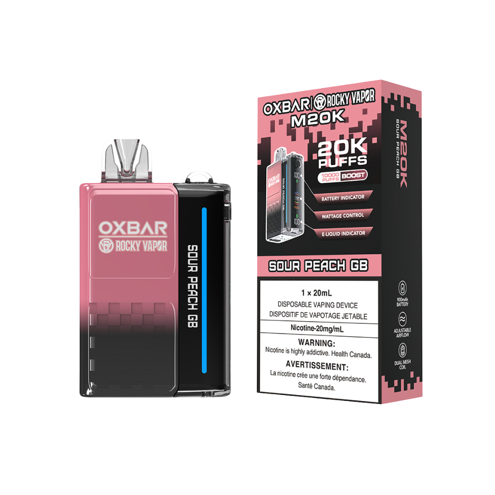 Oxbar Rocky Vapor M20K 20K Puffs Sour Peach GB Adjustable Wattage Rechargeable Disposable Vape 20Mg