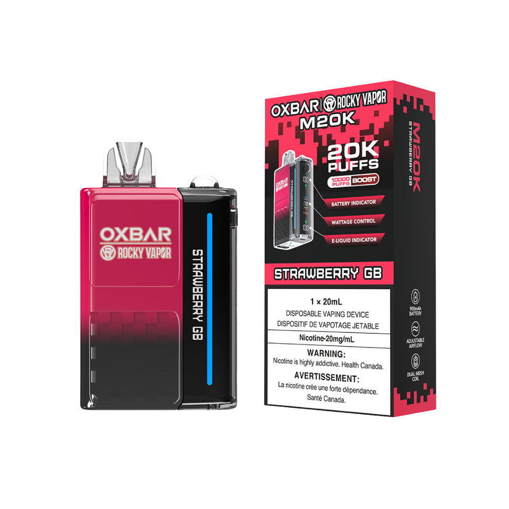 Oxbar Rocky Vapor M20K 20K Puffs Strawberry GB Adjustable Wattage Rechargeable Disposable Vape 20Mg