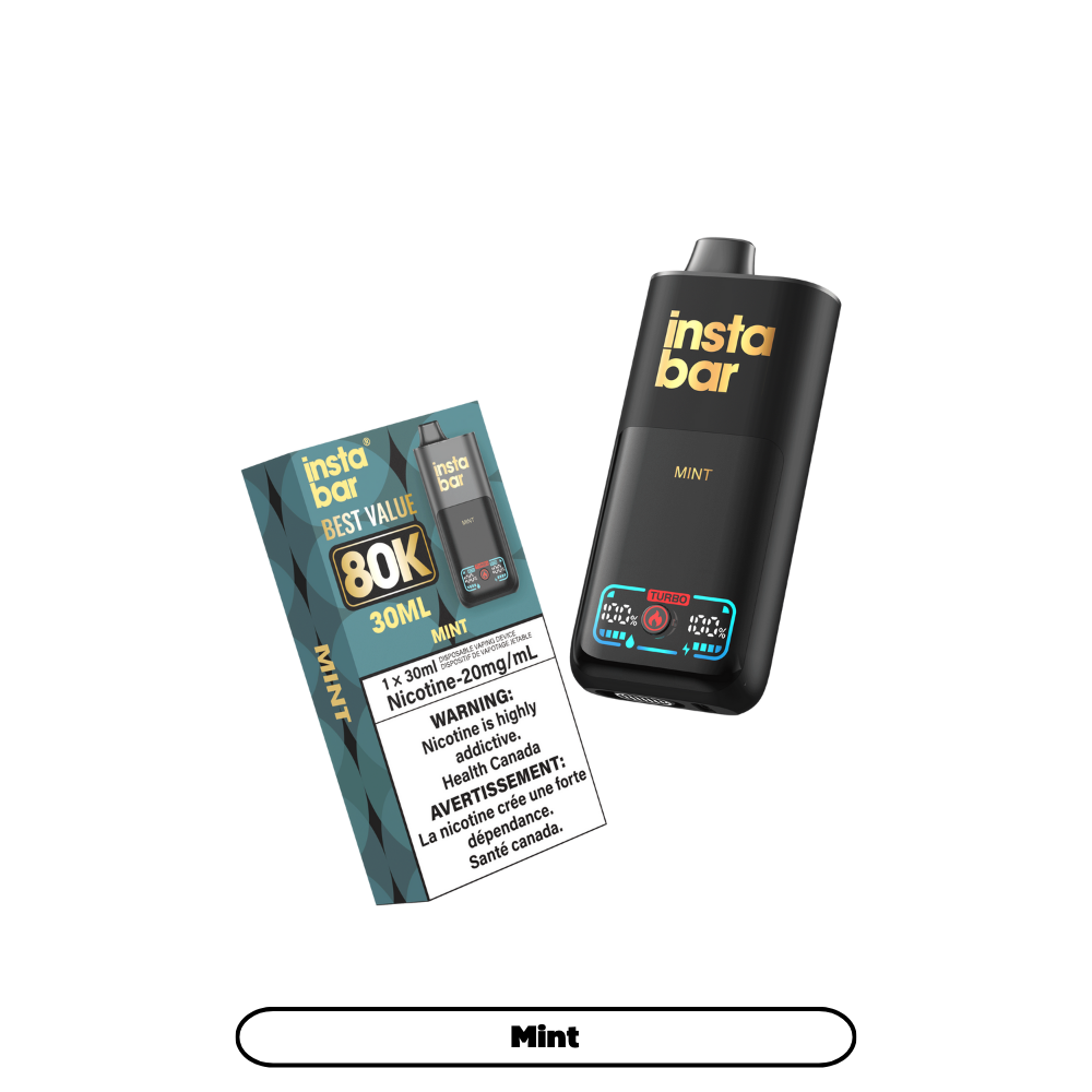 Insta Bar 80K bouffées - Vape jetable rechargeable à la menthe 20Mg