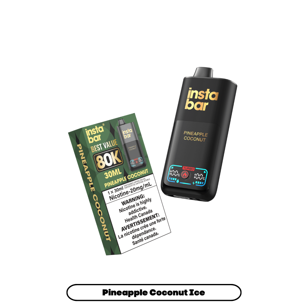 Insta Bar 80K bouffées - Vape jetable rechargeable Ananas Noix de coco 20Mg