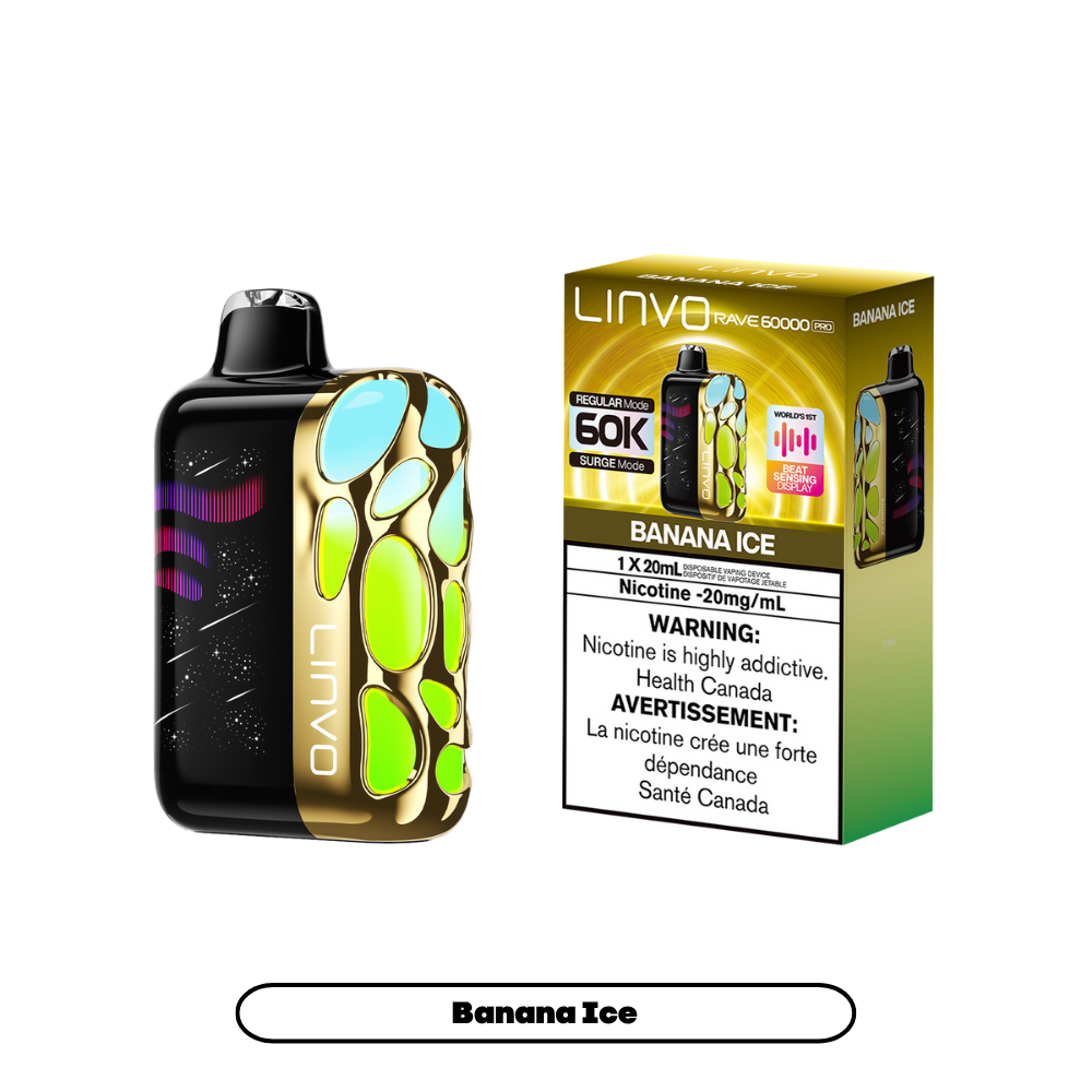 Linvo Rave 60000 Bouffées - Vape Jetable Rechargeable Banane Glacée 20Mg