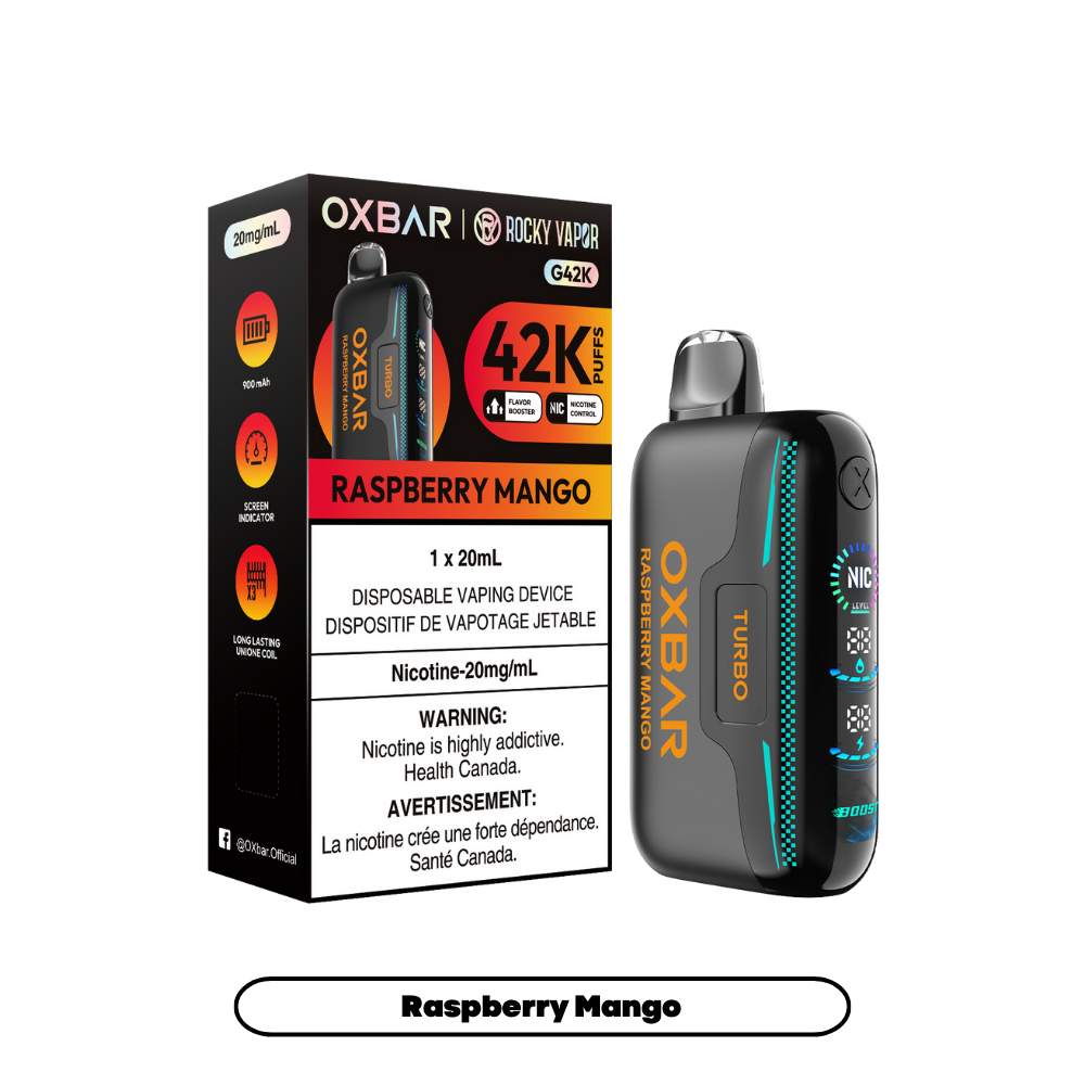 Oxbar Rocky Vapor G42k Framboise Mangue 42K bouffées Nicotine réglable Vape jetable rechargeable 20Mg