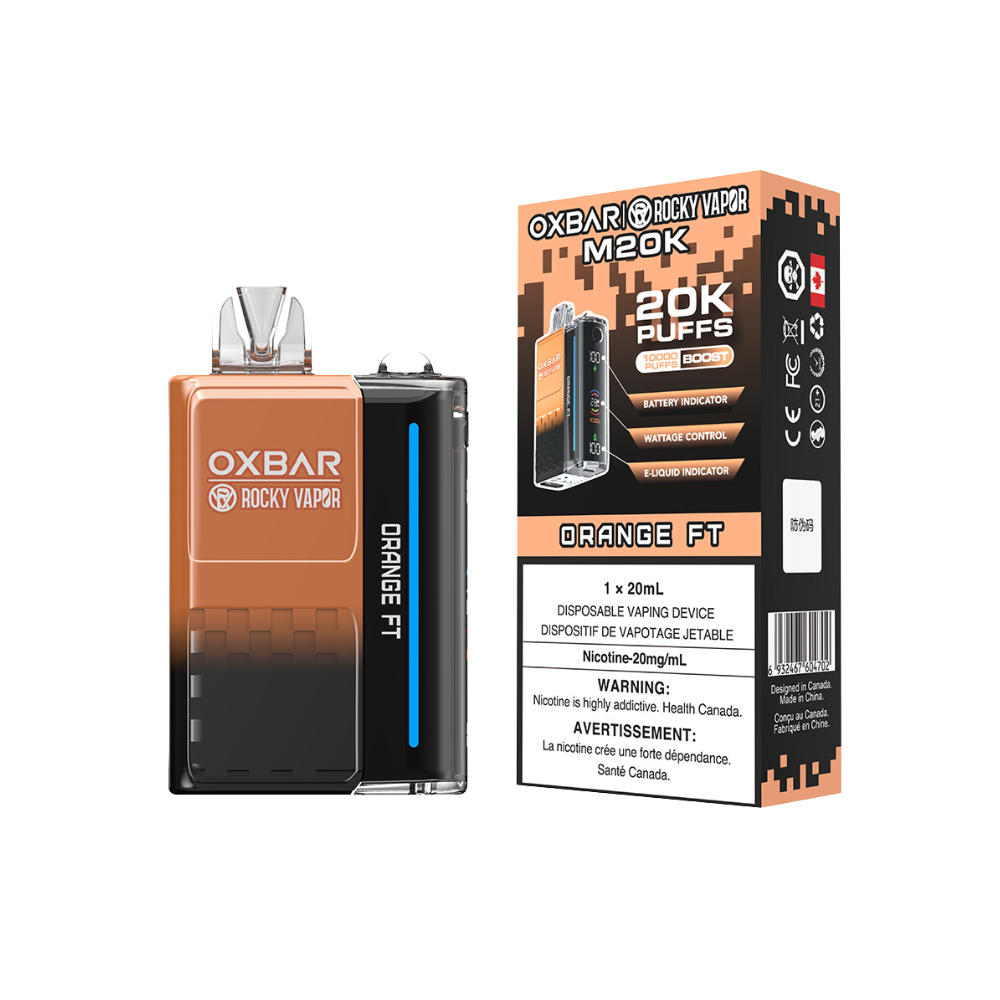 Oxbar Rocky Vapor M20K 20 000 bouffées Orange FT Vape jetable rechargeable à puissance réglable 20 mg