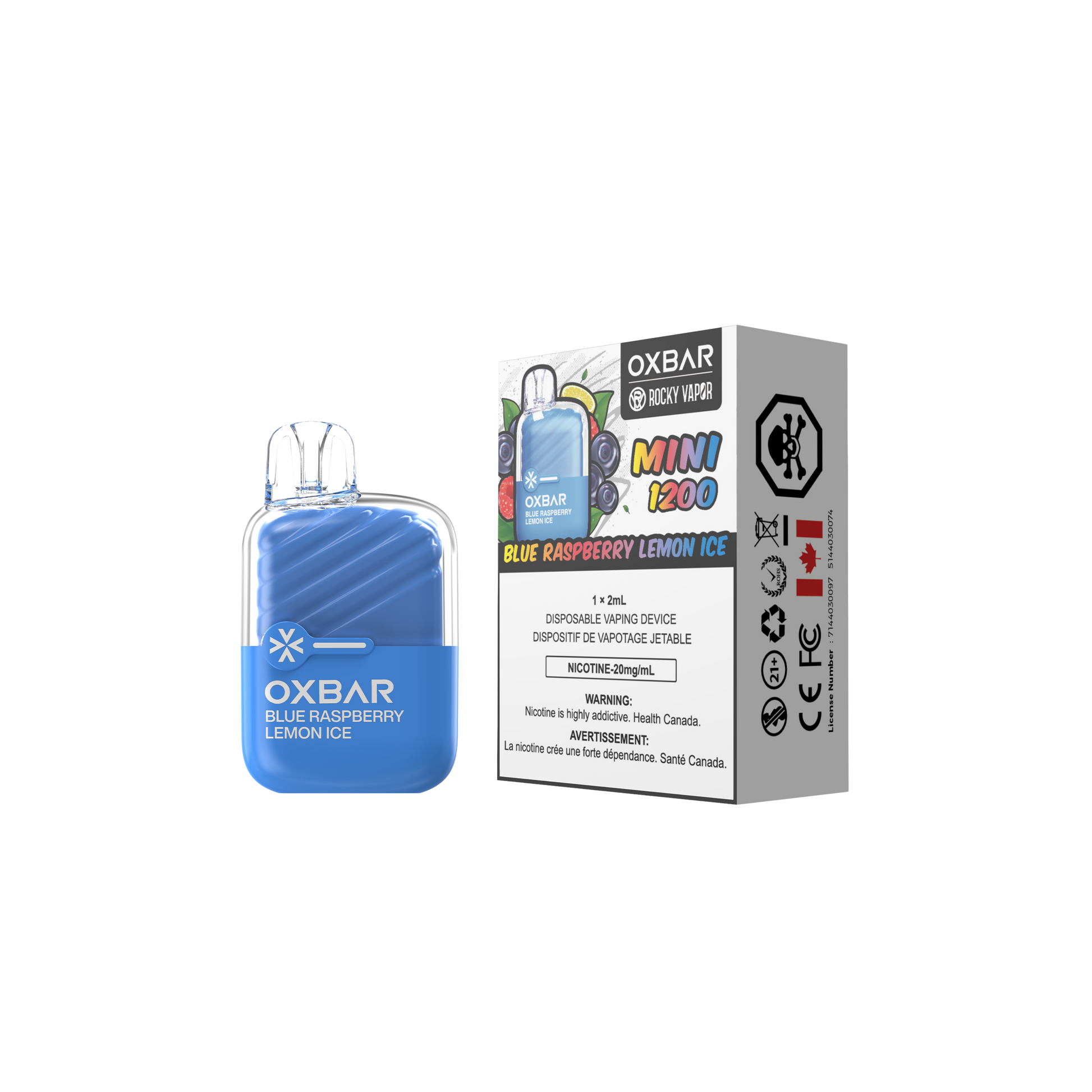 Oxbar Rocky Vapor Mini 1200 Bouffées Framboise Bleue Vape Jetable 20Mg