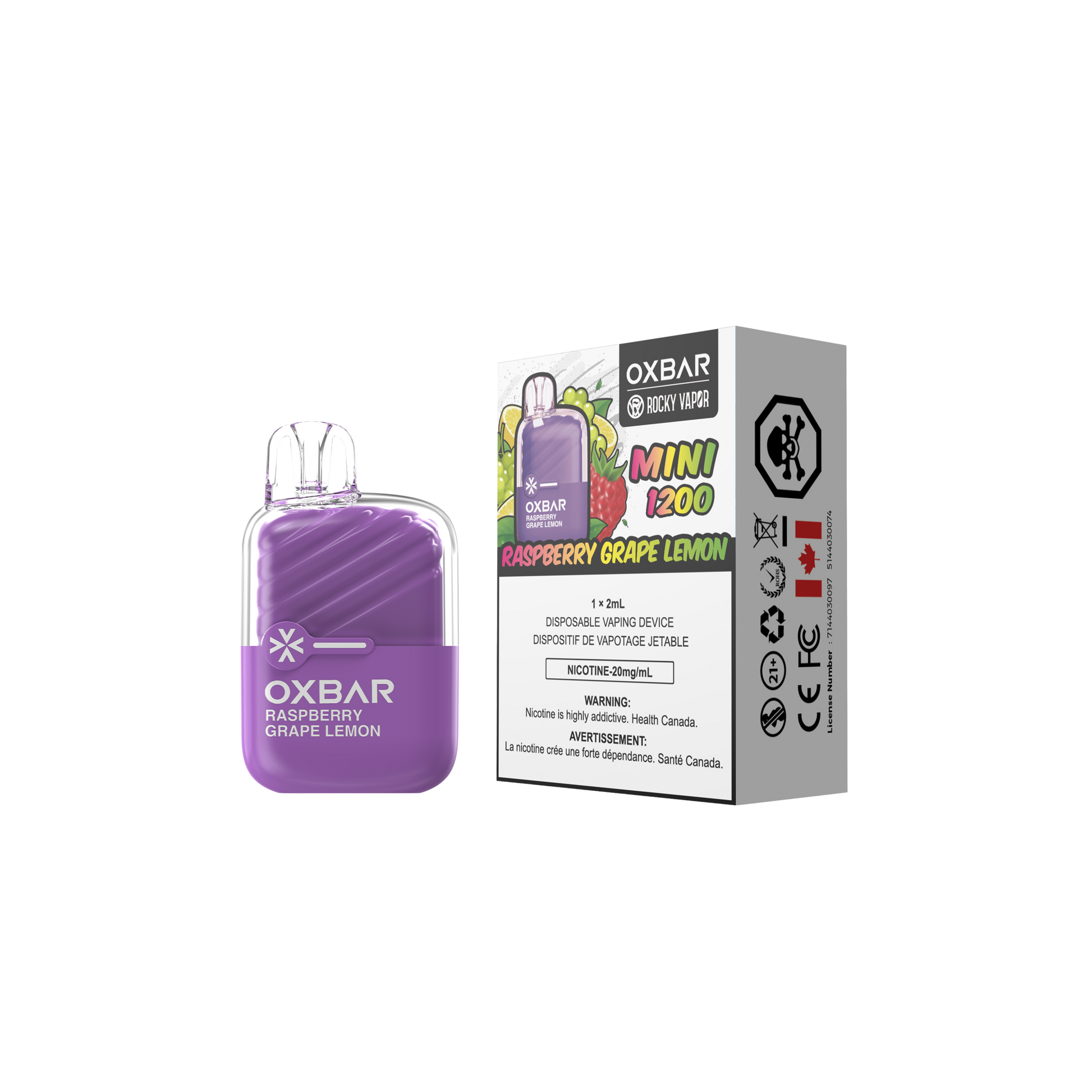 Oxbar Rocky Vapor Mini 1200 bouffées framboise raisin citron vape jetable 20Mg