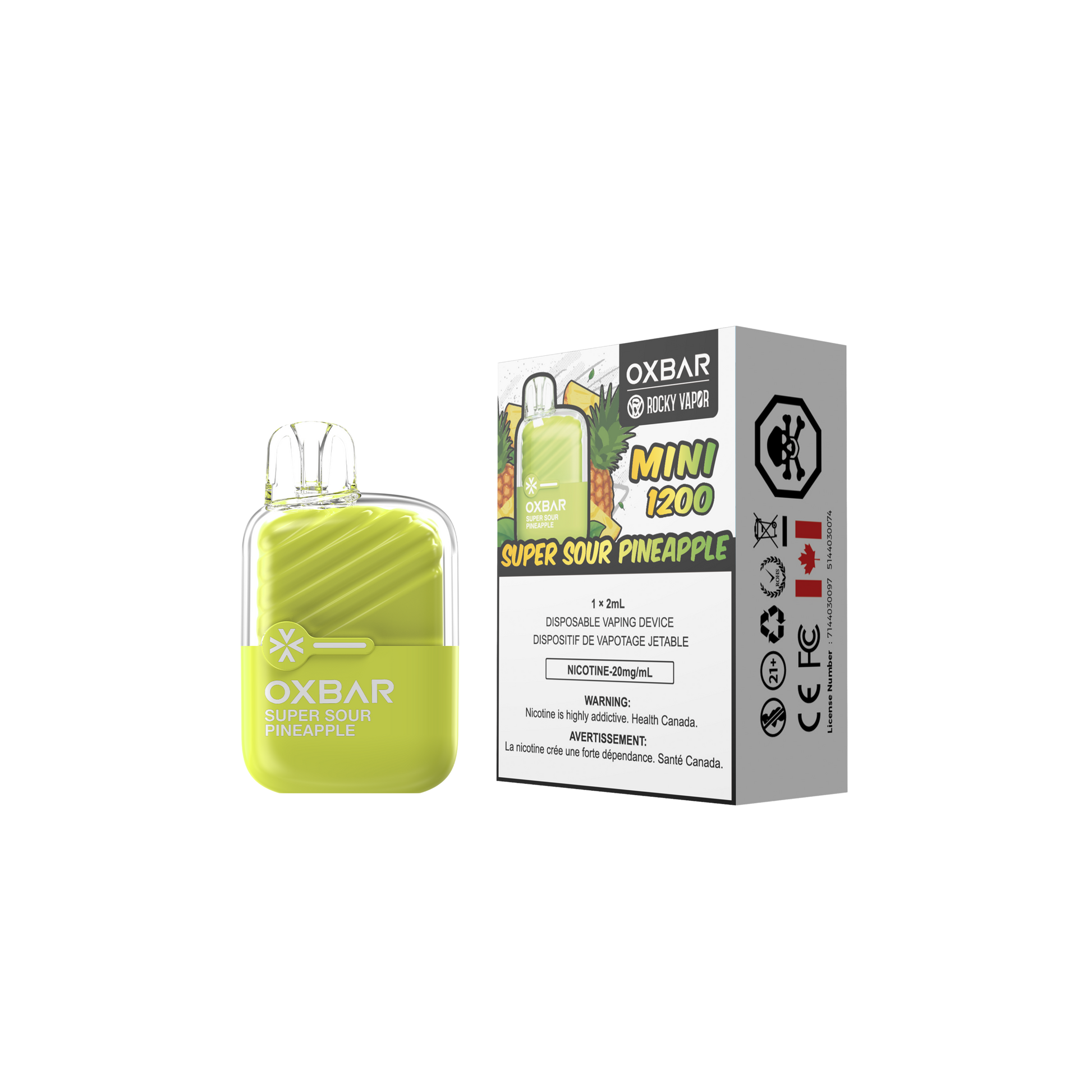 Oxbar Rocky Vapor Mini 1200 bouffées Super Ananas Acide Vape Jetable 20Mg